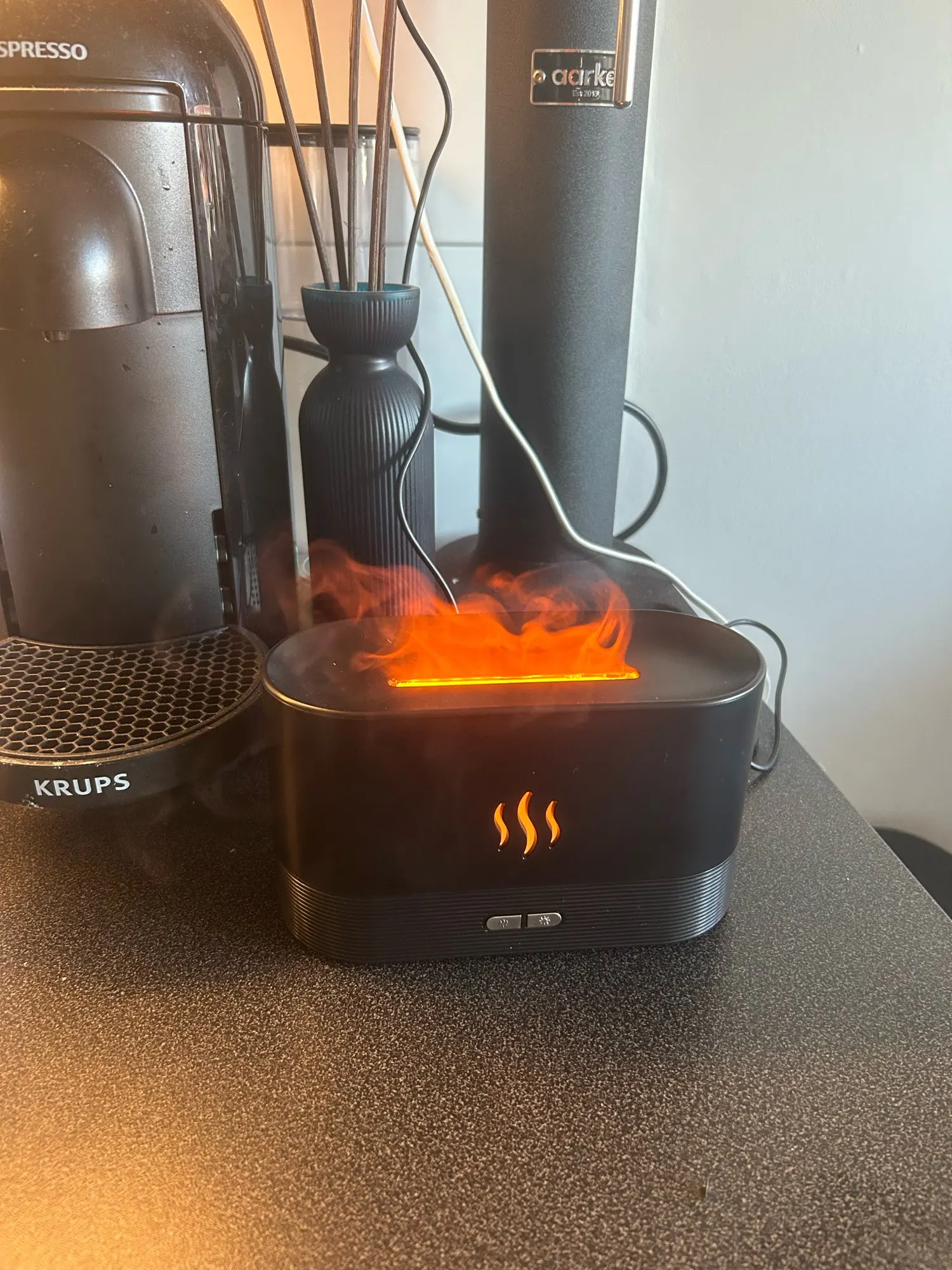 Designed with a stunning simulated flame effect, this humidifier doubles as a decorative fragrance diffuser. The colorful flame lighting adds visual warmth and elegance to any room, instantly enhancing the atmosphere.